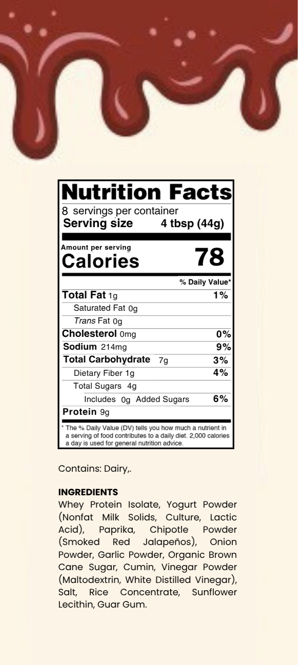 smoky, spicy, and packed with protein. just 78 calories and 9g of protein per serving—because who’s ever satisfied with just a drizzle?